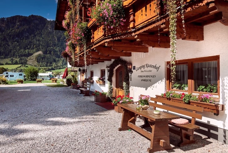 There are two options for your journey to Camping Kastenhof. The most direct from Calais at 700 miles is via Luxembourg on the E25, the A13 & A8 in Germany to Munich, then 99 and A8 again to the Austrian border just south of Salzburg. Follow A1 and A10 (toll, vignette or GoBox required) until junction 47 for Ellmauthal, where you take the 311 to St Johann im Pongau. As you pass by St Johann with the river on your left you will see the OAMTC building to your left, leave the 311 here and cross the 311 and the river onto Alpendorfstrasse. After 1 mile turn left into Liechtensteinklammstraße for 100m and then left into Kastenhofweg. The campsite is 100m on your left. Access is level and should present no difficulties in all but the harshest weather conditions.