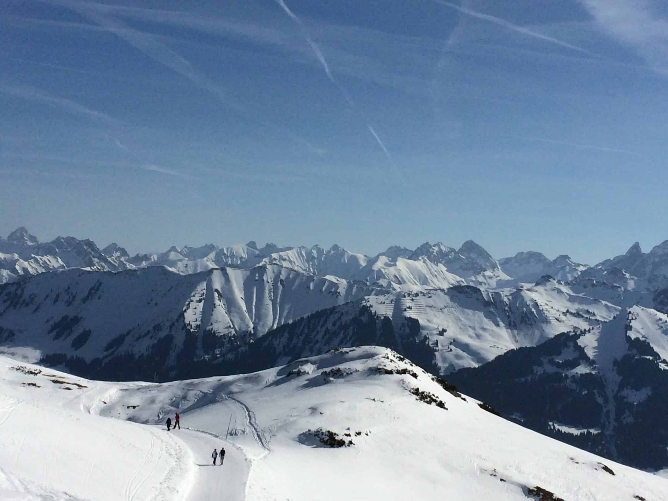 Oberstdorf ski resort lies on the border of Germany and Austria. It has 130 kms of piste spread over three ski areas. The first is accessed from a gondola in the town centre which takes you to the Nebelhorn at 2220m. The second is 8 kms out of town at the end of the Kleinwalsertal valley and the Fellhorn at 2037m. This area is actually in Voralberg, Austria and features 3 other ski areas; Mittleberg, Hirshegg & Baad. Lastly the Schonblick ski area at 1450m can be accessed from the Sollereckbahn gondola which is 7kms from Oberstdorf and is a very scenic area with wooded runs. It is particularly suited to families with young children and beginners. Generally the three areas are dominated by red & blue runs and are popular with intermediates and beginners. Expert skiers tend to migrate towards the Nebelhorn which has some challenging black runs. The area also has excellent langlauf and snowshoe areas and arguably some of the best marked ‘on mountain’ walking areas in the Alps.