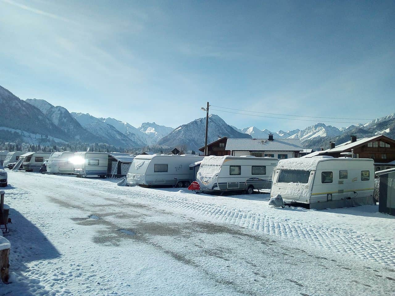 Oberstdorf is a straightforward drive from Calais being only 25 miles from Junction 136 on the A7 at Sulzberg in the Allgau. The most direct route is via Belgium, Luxembourg and the Germany autobahn network at 579 miles, although for caravanners, missing out Luxembourg and heading for Koln & Wurzburg and the A7 at 635 miles will prove to be a less hilly and easier tow. The campsite is level access from the main road, but can be icy on erratically maintained internal roads.