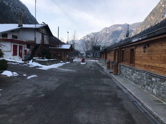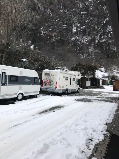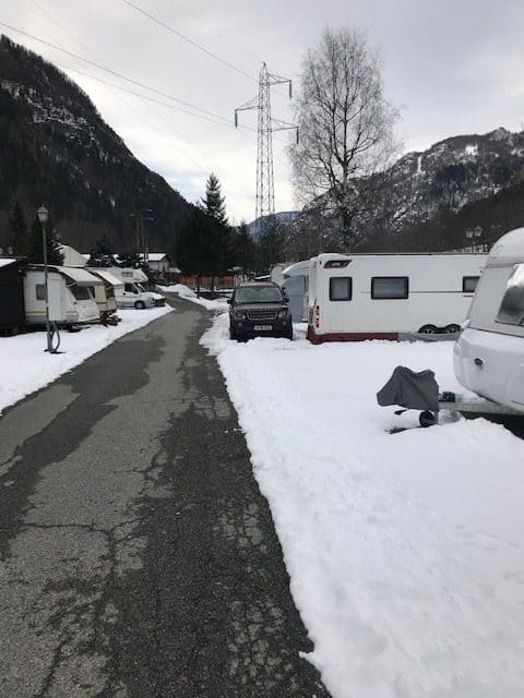 Camping Cervino is predominantly a static site with a significant number of cabins, static caravans, and seasonal pitches. It is well established and maintained with a modern central facilities block offering showers (free), toilets, washing up area, laundry, and chemical disposal. There are about 30 touring pitches on both hard standing and grass (steel pegs required for awnings) and is popular with caravans and motorhomes for skiing. The paths around the site are tarmac and cleared each day after snow throughout the ski season. The site is very quiet Monday to Thursday and livens up with weekenders from Turin & Milan from Thursday to Sunday.